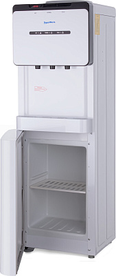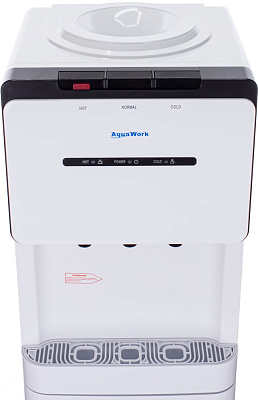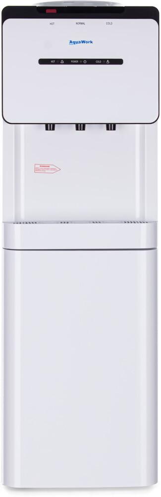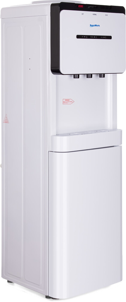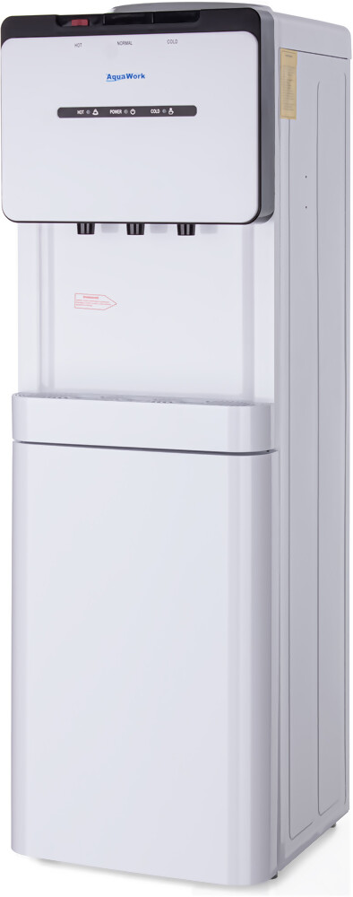 Напольный кулер для воды Aqua Work V908 с компрессорной системой охлаждения, стройным корпусом и миниатюрным встроенным шкафчиком.