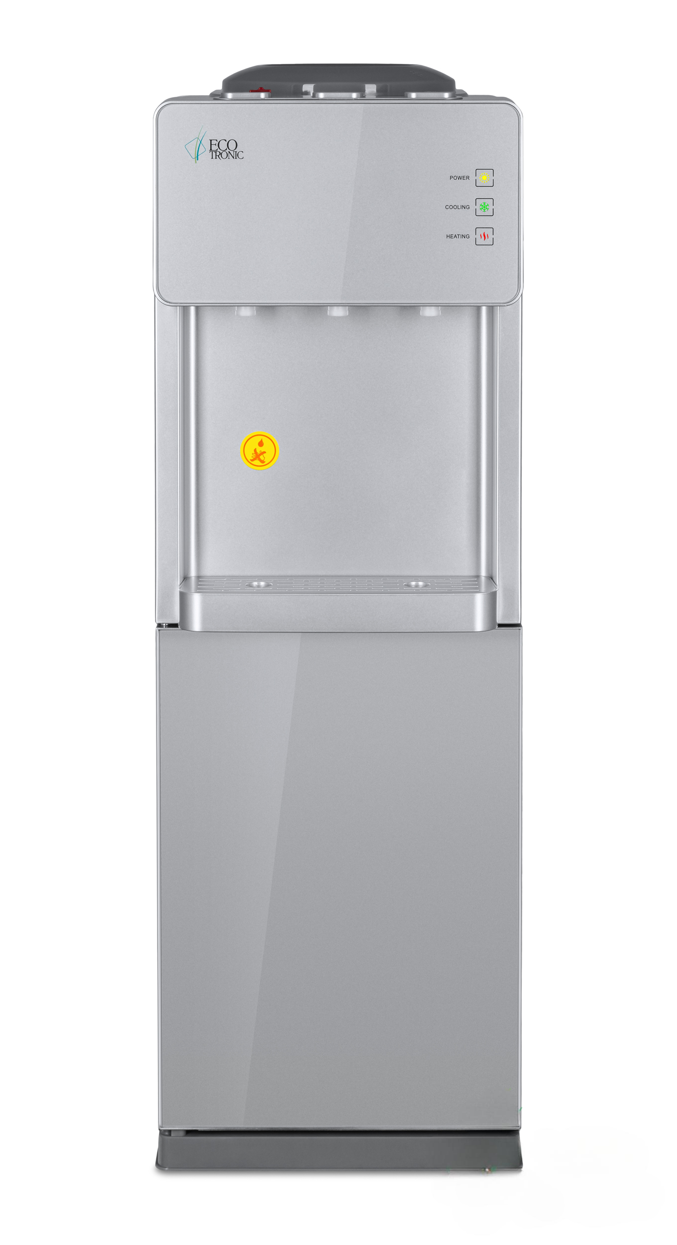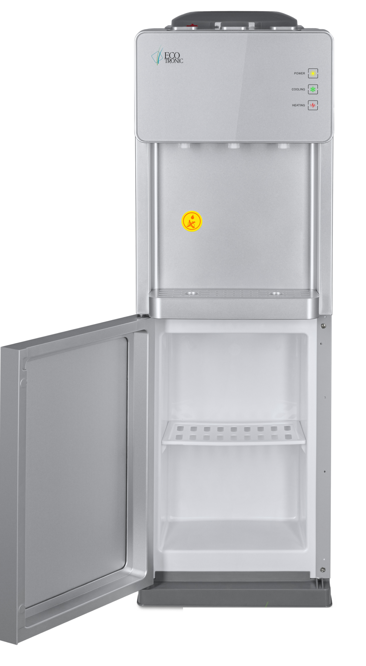 Напольный кулер с электронным охлаждением и шкафчиком в нижней части.